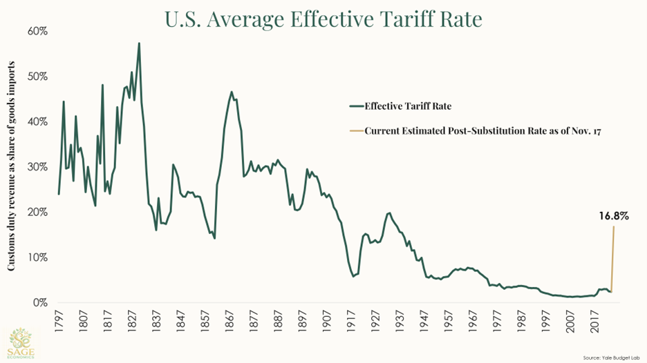 And then there were tariffs, larger and more volatile than virtually anyone thought possible. Our current effective tariff rate (16.8%) is the highest since the 1930s.