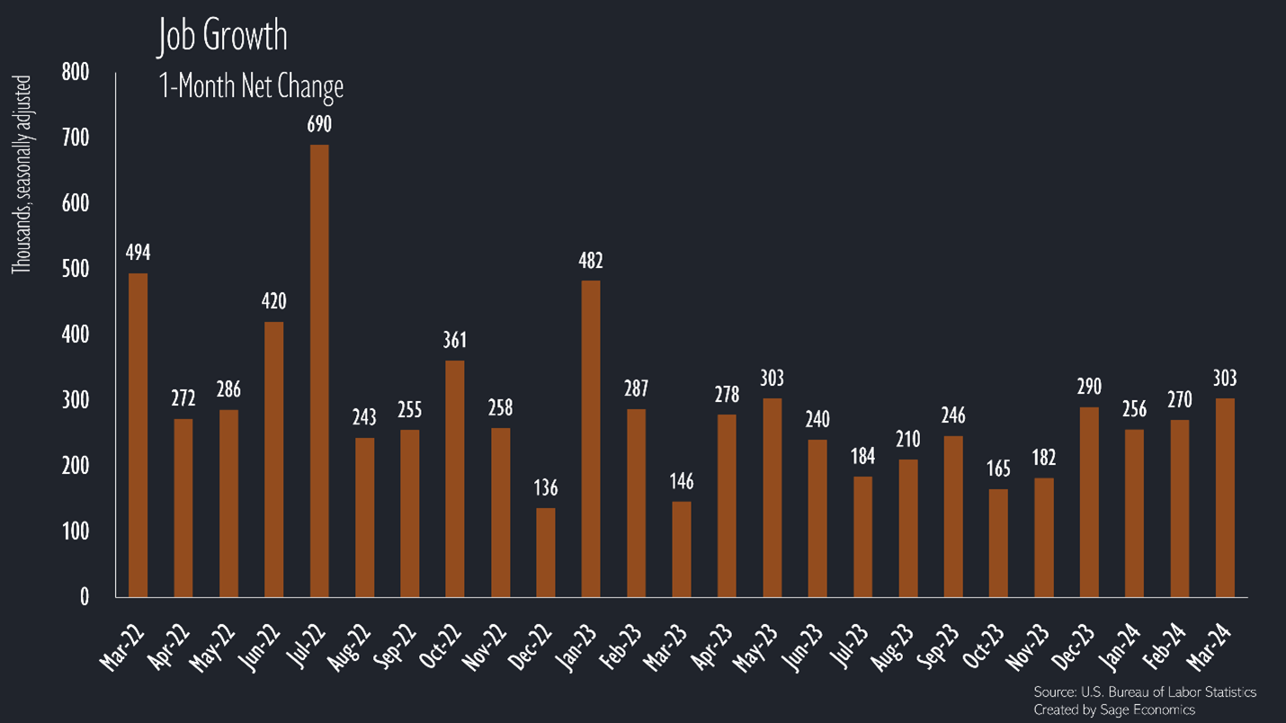 Employment increased by a blistering 303,000 in March. That’s about 100,000 more jobs than expected and matches the fastest monthly growth since January 2023. On top of that, revisions to January and February’s data added another 22,000 jobs.