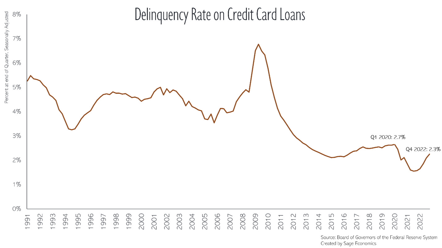Despite the four-decade-high inflation experienced over the past two years, delinquency rates on debt were in pretty good shape as of the end of 2022. Delinquency rates on credit card debt, residential mortgages, commercial real estate loans, other business loans, and agricultural real estate are all lower than they were at the start of 2020. This is good from the perspective of inflation not wrecking personal and commercial finances but bad from the perspective of higher interest rates dampening demand and driving down inflation.