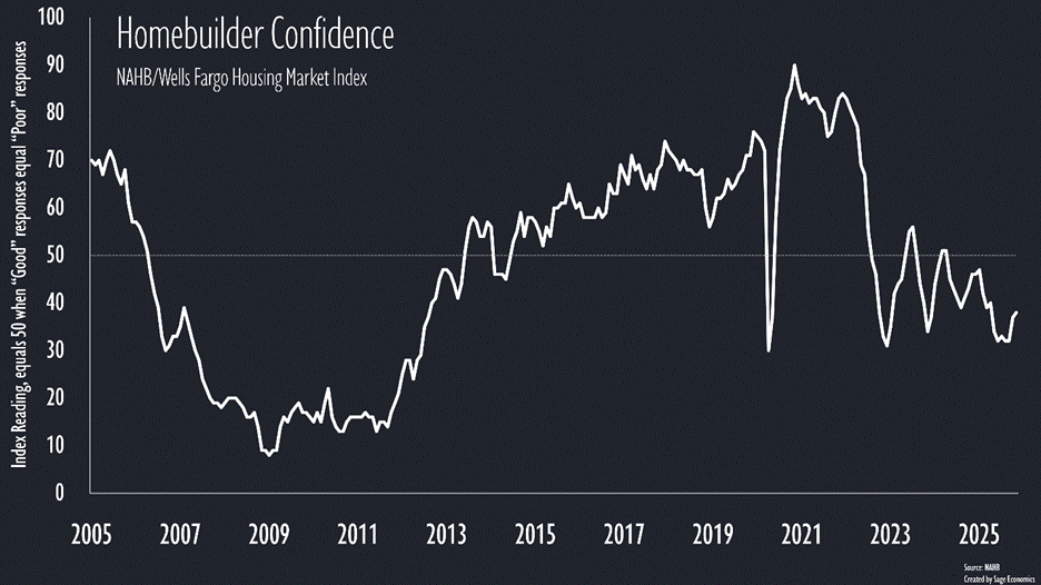 This measure of homebuilder confidence increased for a second consecutive month in November but remains well below its early-2025 level. Homebuilders are particularly glum about the traffic of prospective buyers, but pretty upbeat about single family starts over the next six months. There is a belief among many that once 30-year fixed mortgage rates fall below the psychological threshold of 6 percent, the market will take off. That’s behavioral economics in action.