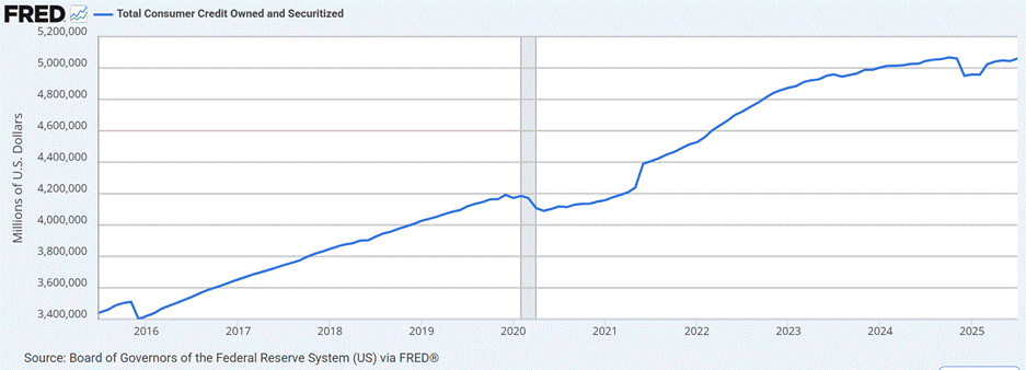 Outstanding consumer credit (i.e., consumer debt) rose at a 3.8% annualized rate in July. That’s the fastest increase since April and was largely driven by a big jump in revolving credit outstanding (think credit cards, HELOCs).