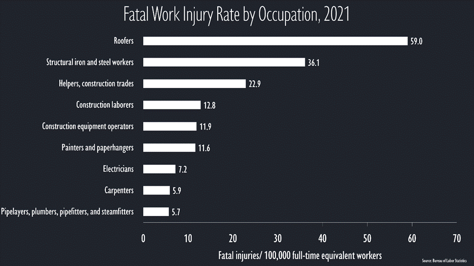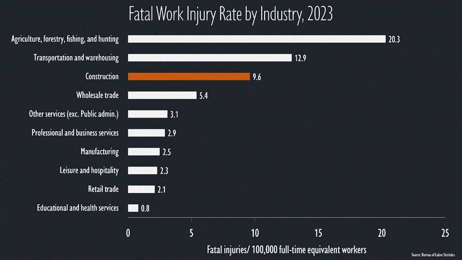 Construction accounted for more than one in five fatal occupational injuries in 2023, making it the third most dangerous industry (logging, it should be noted, is obscenely dangerous—do not do logging).