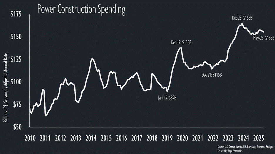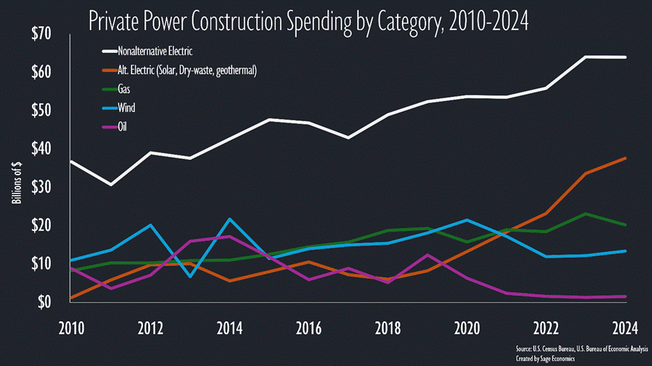 Alternative energy categories like solar and geothermal are booming, with construction spending up an incredible 2,834% since 2010.