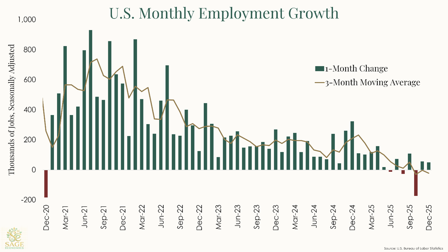 Today’s jobs report is disappointing at a glance. U.S. employers added just 50,000 jobs in December, and employment actually declined by 67,000 jobs during 2025’s fourth quarter.