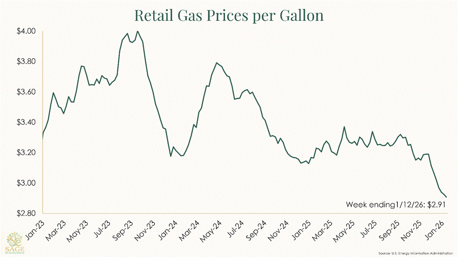 Gas prices are down to $2.91/gallon. That’s exceptionally low, which is great for consumers.