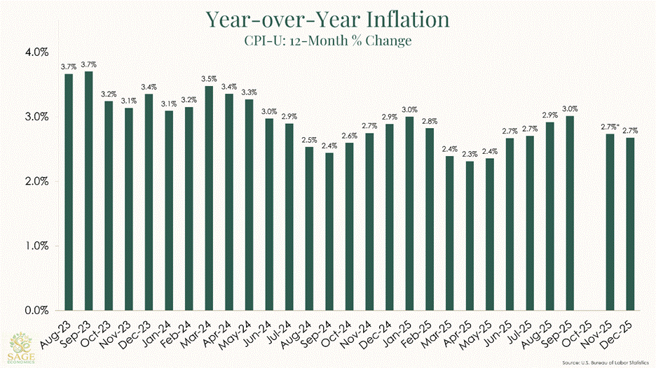 This measure of small business optimism increased in December but remains well below year-ago levels. Notably, the uncertainty component of the index fell to the lowest level since April 2024. A stable policy environment would go a long way for businesses in 2026.