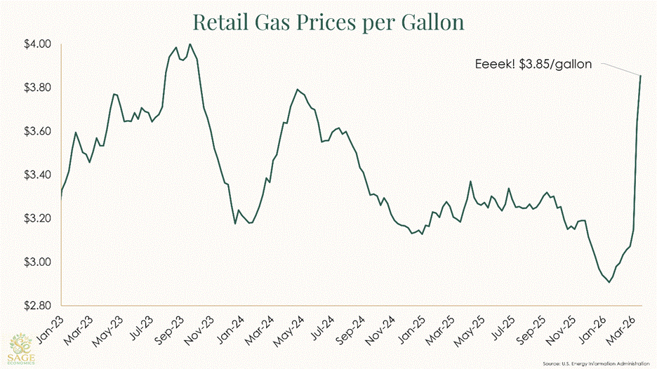 Diesel prices surged above $5.00/gallon for the first time since 2022. That’s going to hurt a lot of parts of the economy in a lot of different ways. Food prices are headed higher as is any good that needs to be transported in the near-term.