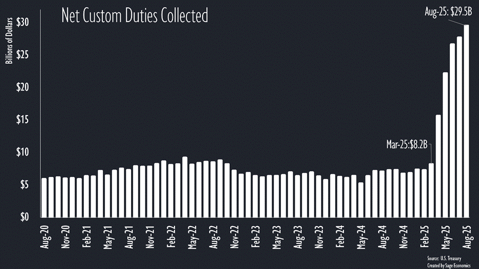 The U.S. has collected more customs duties in the 5 months since Liberation Day—about $122 billion—than in the 18 months prior.