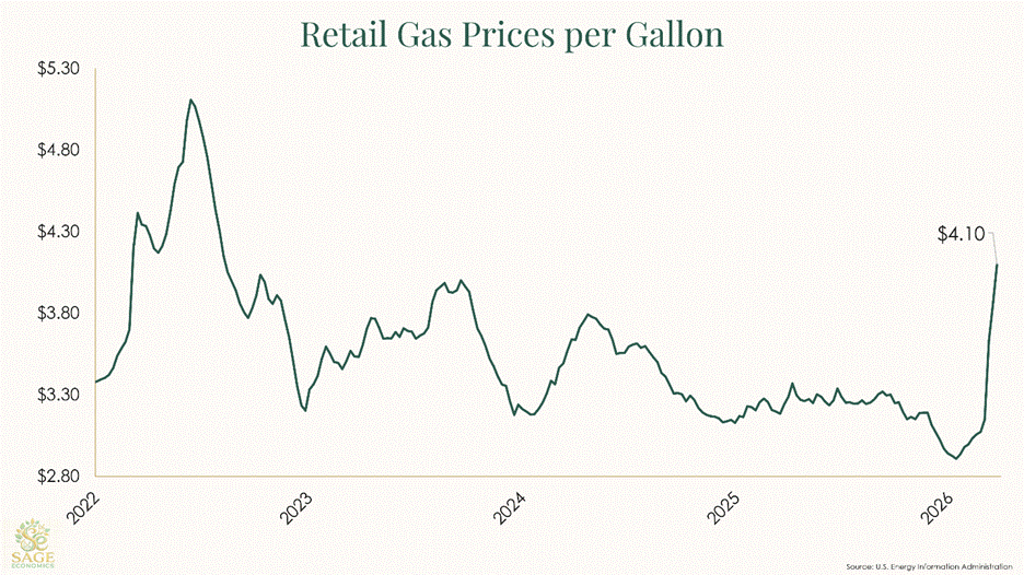 Gas prices shot up to $4.10/gallon for the week ending March 23rd. That’s up more than $1.00/gallon from late February.