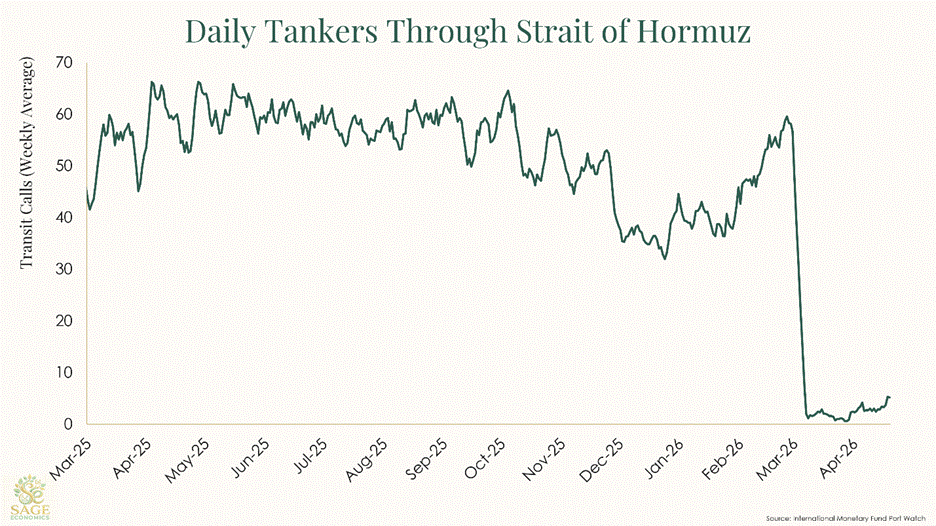 There’s been a slight increase in traffic through the Strait of Hormuz, but nowhere near what needs to happen to alleviate pressure on oil markets.