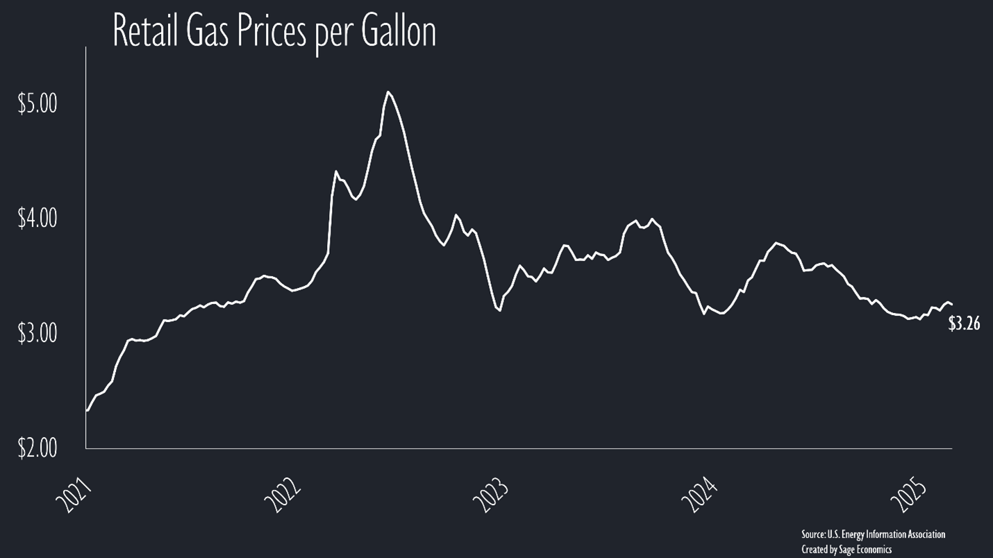 Gas prices inched down to $3.26/gallon this week but will start moving higher as soon as gas stations switch over to summer-blend gasoline. Diesel prices rose to $3.70/gallon. That’s the highest price since August but still way lower than one year ago.