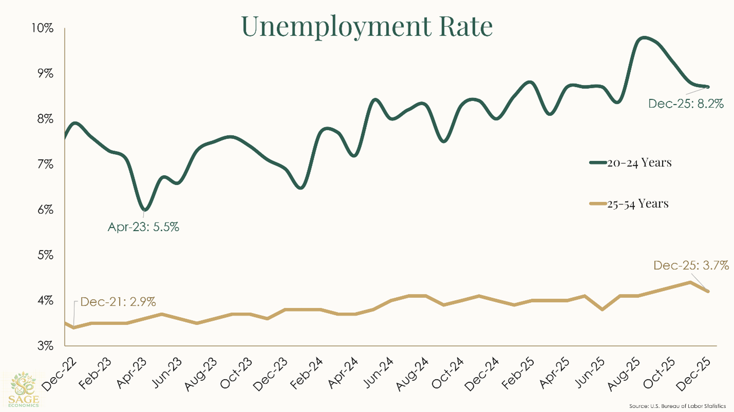 Last week we wrote about the K-Shaped story and the actual winners (people with jobs) and losers (people who need jobs) of the current economy. This week’s post is about the demographic suffering most under current dynamics: young adults (a topic we wrote about at length last November).
